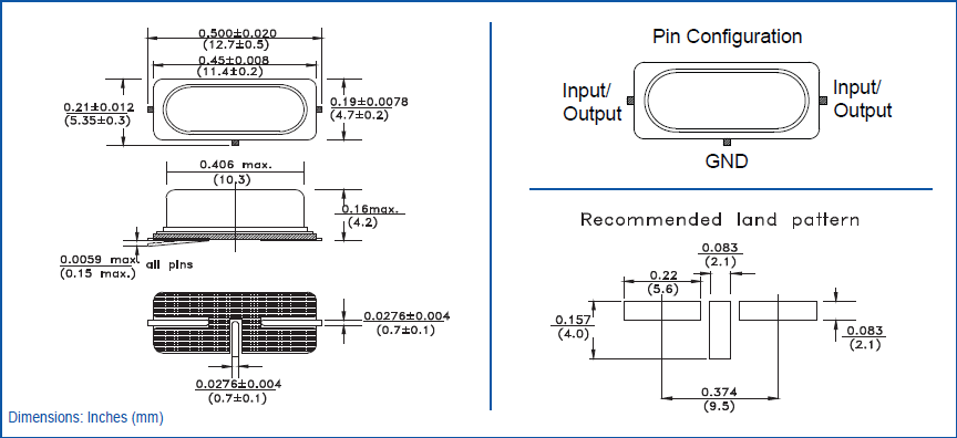 | Drive Level | 1 mW max , 100µW typical |