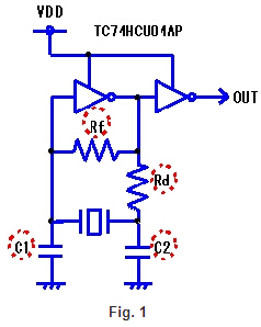 Table-1When反饋電阻(Rf)不是安裝在振蕩電路,如表1所示,諧振器不開始振蕩即使電源應用于振蕩電路.除非適當的值連接的電阻器,振蕩不開始正式晶體諧振器的模式,但泛音振動或基本振蕩開始.在基本諧振器(MHz頻帶)反饋電阻通常是1 MΩ.的泛音諧振器(MHz頻帶)值取決于集成電路和頻率特性,但是在幾個kΩ——數萬kΩ的范圍.的音叉型諧振器(千赫樂隊),需要連接一個電阻10 MΩ或更多.
