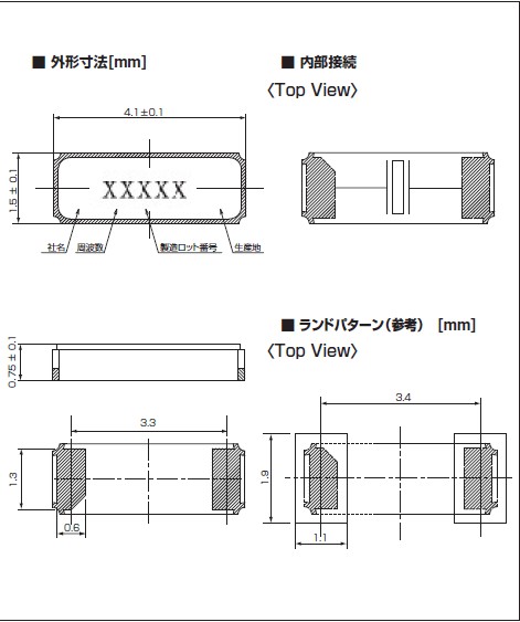 | 周波數許容偏差 | ± 20×10-6,± 30×10-6,± 50×10-6(at 25℃) | |