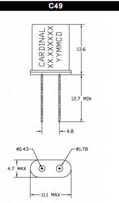| C49X-A1B2C2-40-33.0D16 | Cardinal晶振 | C49 | 33MHz | 16pF | ±50ppm | 40 Ohm | -20°C ~ 70°C |