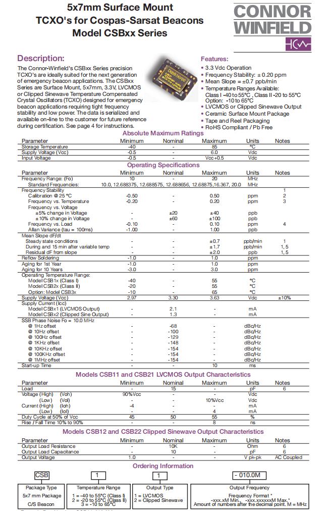 CSB11-012.0M,LVCMOS石英振蕩器,6G無線網絡晶振,ConnorWinfield晶振,美國進口晶振,CSB1X