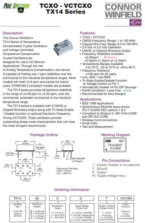 TX14-0523T-032.0M,TCXO長方形鐘振,6G無線通信晶振,Connor-Winfield晶振,TX14有源晶振,TX14-0523T-032.0M晶振,TCXO長方形鐘振,石英晶體振蕩器,頻率32MHz,電壓3.3V,工作溫度-40~85°C,頻率穩(wěn)定性0.5ppm,低相噪晶振,高頻率穩(wěn)定性晶振,6G無線通信晶振,IEEE 1588應(yīng)用晶振,顯卡晶振,測試與測量設(shè)備晶振,以太網(wǎng)時(shí)鐘晶振.