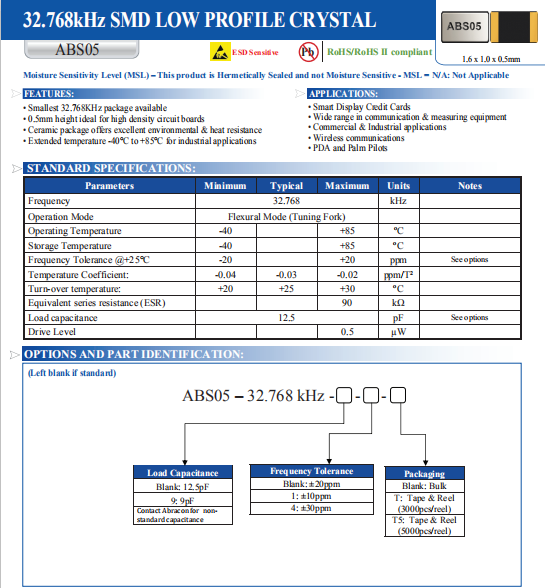 | ABRACON晶振 | 單位 | ABS05晶振 | 石英晶振基本條件 |