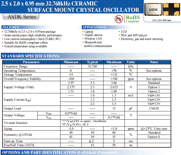 ABRACON晶振,ASDK2-32.768KHZ-LR-T3晶振,ASDK晶振,高質量振蕩器.智能手機晶振,產品具有高精度超小型的表面貼片型石英晶體振蕩器,最適用于移動通信終端的基準時鐘等移動通信領域.比如智能手機,無線通信,衛星導航,平臺基站等較高端的數碼產品,晶振本身小型,薄型具備各類移動通信的基準時鐘源用頻率,貼片晶振具有優良的電氣特性,耐環境性能適用于移動通信領域,滿足無鉛焊接的高溫回流溫度曲線要求.