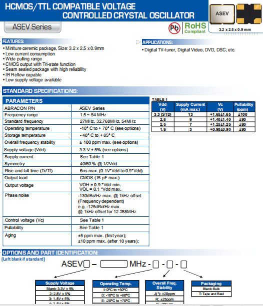 ABRACON晶振,ASEV晶振,壓控晶體振蕩器.高精度超小型的表面貼片型石英晶體振蕩器,最適用于移動通信終端的基準時鐘等移動通信領(lǐng)域.比如智能手機,無線通信,衛(wèi)星導航,平臺基站等較高端的數(shù)碼產(chǎn)品,晶振本身小型,薄型具備各類移動通信的基準時鐘源用頻率,貼片晶振具有優(yōu)良的電氣特性,耐環(huán)境性能適用于移動通信領(lǐng)域,滿足無鉛焊接的高溫回流溫度曲線要求.