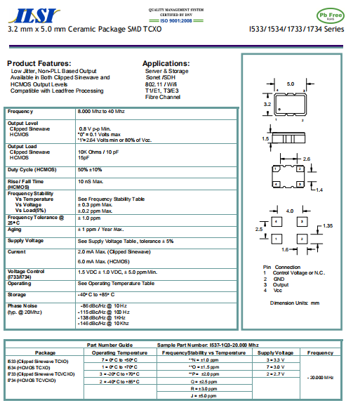 ILSI晶振,I733晶振,壓控溫補(bǔ)振蕩器.普通石英晶振,外觀完全使用金屬材料封裝的,產(chǎn)品本身采用全自動石英檢測儀,以及跌落,漏氣等苛刻實(shí)驗(yàn).產(chǎn)品本身具有高穩(wěn)定性,高可靠性的石英晶體振蕩器,焊接方面支持表面貼裝,外觀采用金屬封裝,具有充分的密封性能,晶振本身能確保其高可靠性,采用編帶包裝,可對應(yīng)產(chǎn)品應(yīng)用到自動貼片機(jī)告訴安裝,滿足無鉛焊接的高溫回流溫度曲線要求.