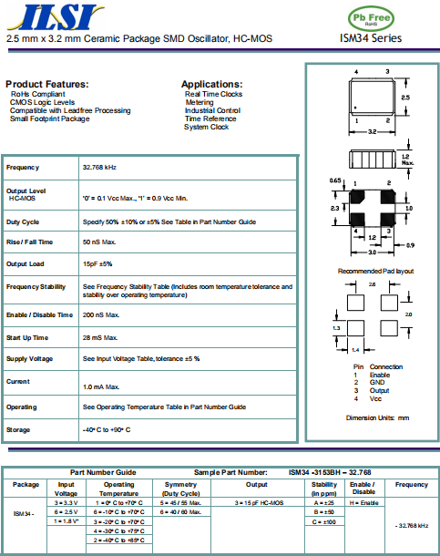 ILSI晶振,ISM34晶振,有源晶體振蕩器.有源晶振,是只晶體本身起振需要外部電壓供應(yīng),起振后可直接驅(qū)動(dòng)CMOS 集成電路,產(chǎn)品本身已實(shí)現(xiàn)與薄型IC(TSSOP封裝,TVSOP封裝)同樣的1mm厚度,斷開(kāi)時(shí)的消費(fèi)電流是15 µA以下,編帶包裝方式可對(duì)應(yīng)自動(dòng)搭載及IR回流焊接(無(wú)鉛對(duì)應(yīng))產(chǎn)品有幾種電壓供選1.8V,2.5V,3V3.3V,5V,以應(yīng)對(duì)不同IC產(chǎn)品需要.
