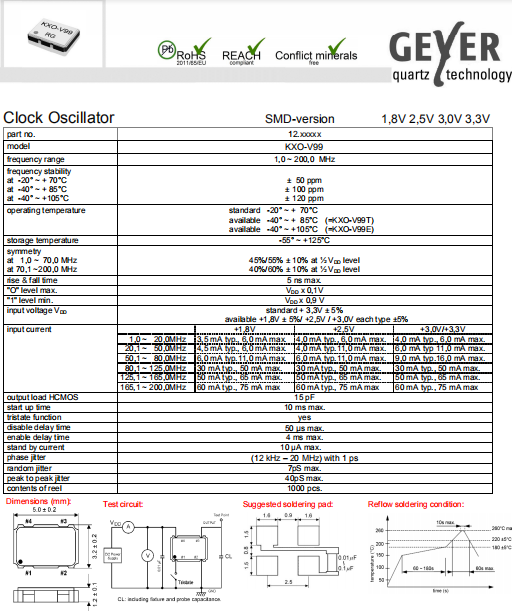 Geyer晶振,KXO-V99晶振,有源晶體振蕩器.小型SMD有源晶振,從最初超大體積到現在的7050mm,6035mm,5032mm,3225mm,2520mm體積,有著翻天覆地的改變,體積的變小也使產品帶來了更高的穩定性能,接縫密封石英晶體振蕩器,精度高,覆蓋頻率范圍寬的特點,SMD高速自動安裝和高溫回流焊設計,Optionable待機輸出三態輸出功能,電源電壓范圍:1.8V~5 V,高穩定性,低抖動,低功耗,主要應用領域:無線通訊,高端智能手機,平板筆記本WLAN,藍牙,數碼相機,DSL和其他IT產品的晶振應用,三態功能,PC和LCDM等高端數碼領域,符合RoHS/無鉛.