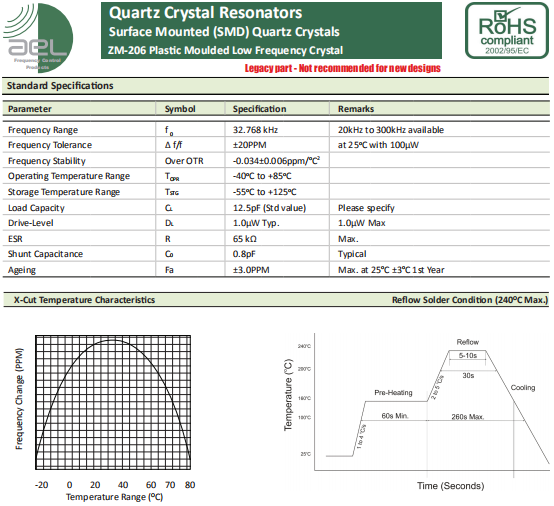 AEL晶振,ZM-206晶振,壓電石英晶體.貼片晶振本身體積小,超薄型石英晶體諧振器,特別適用于有目前高速發展的高端電子數碼產品,因為晶振本身小型化需求的市場領域,小型,薄型是對應陶瓷諧振器(偏差大)和普通的石英晶體諧振器(偏差小)的中間領域的一種性價比較出色的產品.產品廣泛用于筆記本電腦,無線電話,衛星導航HDD,SSD,USB,Blu-ray等用途,符合無鉛焊接的高溫回流焊曲線特性.
