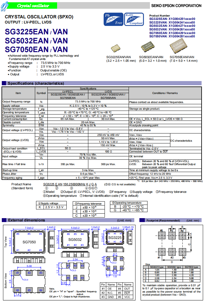 | X1G0042510087 | SG3225EAN | 50.000000 MHz | 3.20 x 2.50 x 1.20 mm | LV-PECL | 2.250 to 3.630 V | -20 to 70 °C |