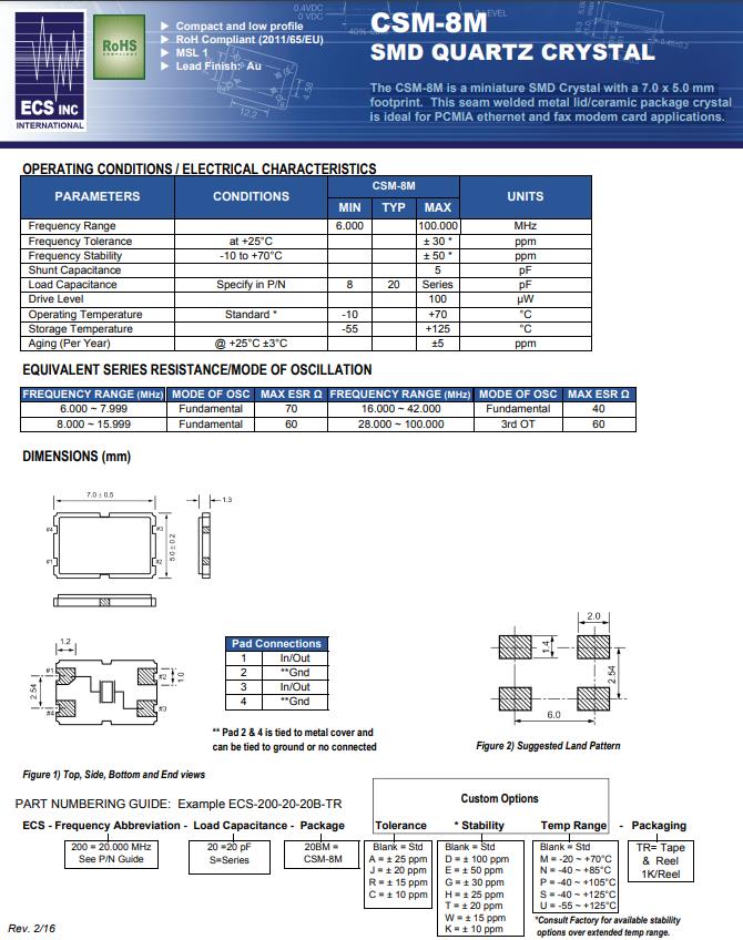 | ECS-160-20-20BM-TR | CSM-8M | 16MHz | ±30ppm | 20pF | -10°C ~ 70°C |