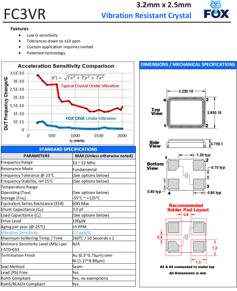 FC3VREEDM48.0-T1,3225mm,FOX抗振動(dòng)晶體,藍(lán)牙模塊晶振,參數(shù)表