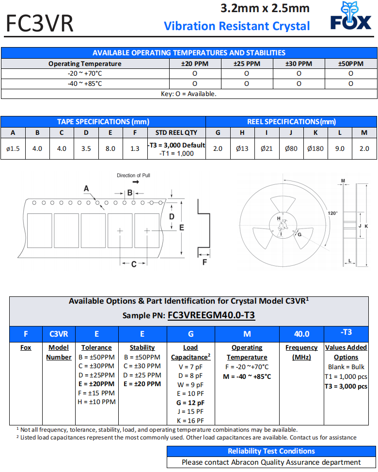 | FC3VREEGM40.0-T1 | Fox晶振 | FC3VR | 40 MHz | ±20ppm |