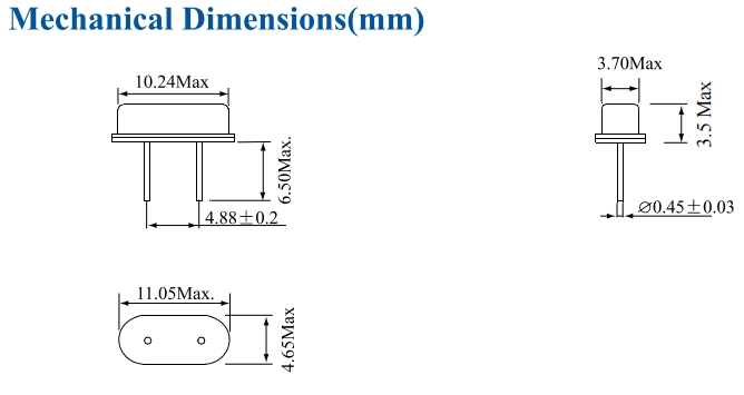 臺(tái)灣鴻星晶振,E49A27E00000ME,6G低成本晶振尺寸圖