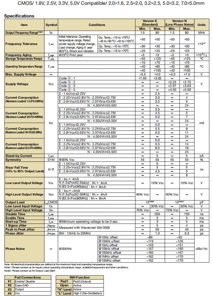 KC2520K25.0000C1GE00 25MHZ 1.6~3.6V CMOS 網絡音頻 參數圖