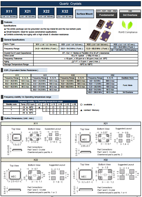 | MERCURY晶振 | 單位 | X22晶振 | 石英晶振基本條件 |
