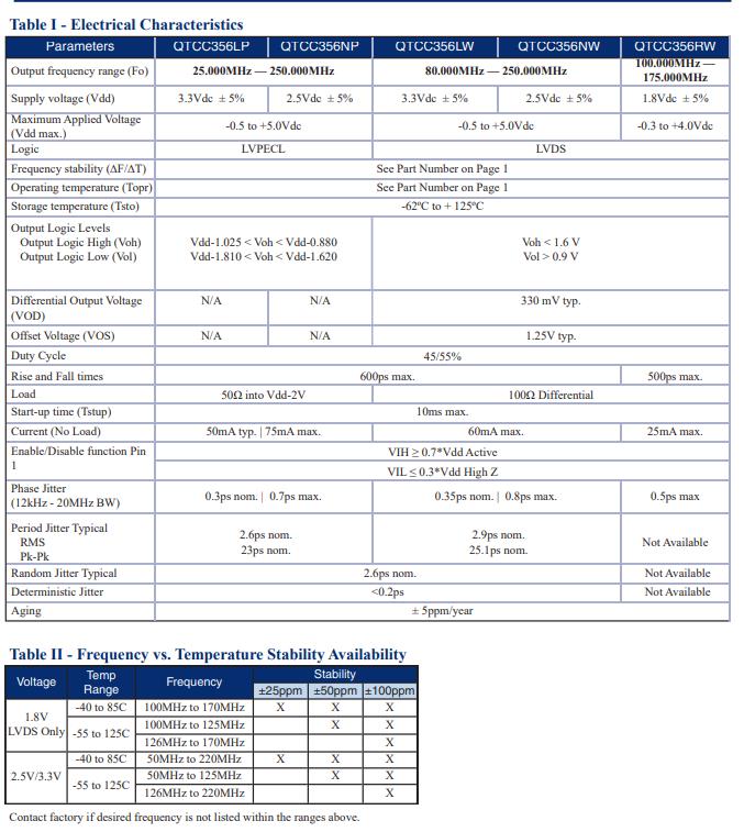 QTCC356LWD12-125.000MHz,LVDS差分晶振,6G以太網(wǎng)晶振參數(shù)表