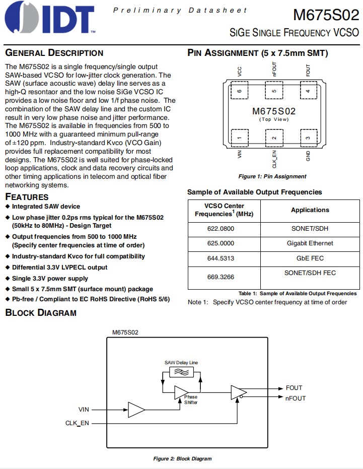 | M675S02-AHT | IDT晶振 | OSC VCSO 669.3266MHZ LVPECL SMD | M675S02 |