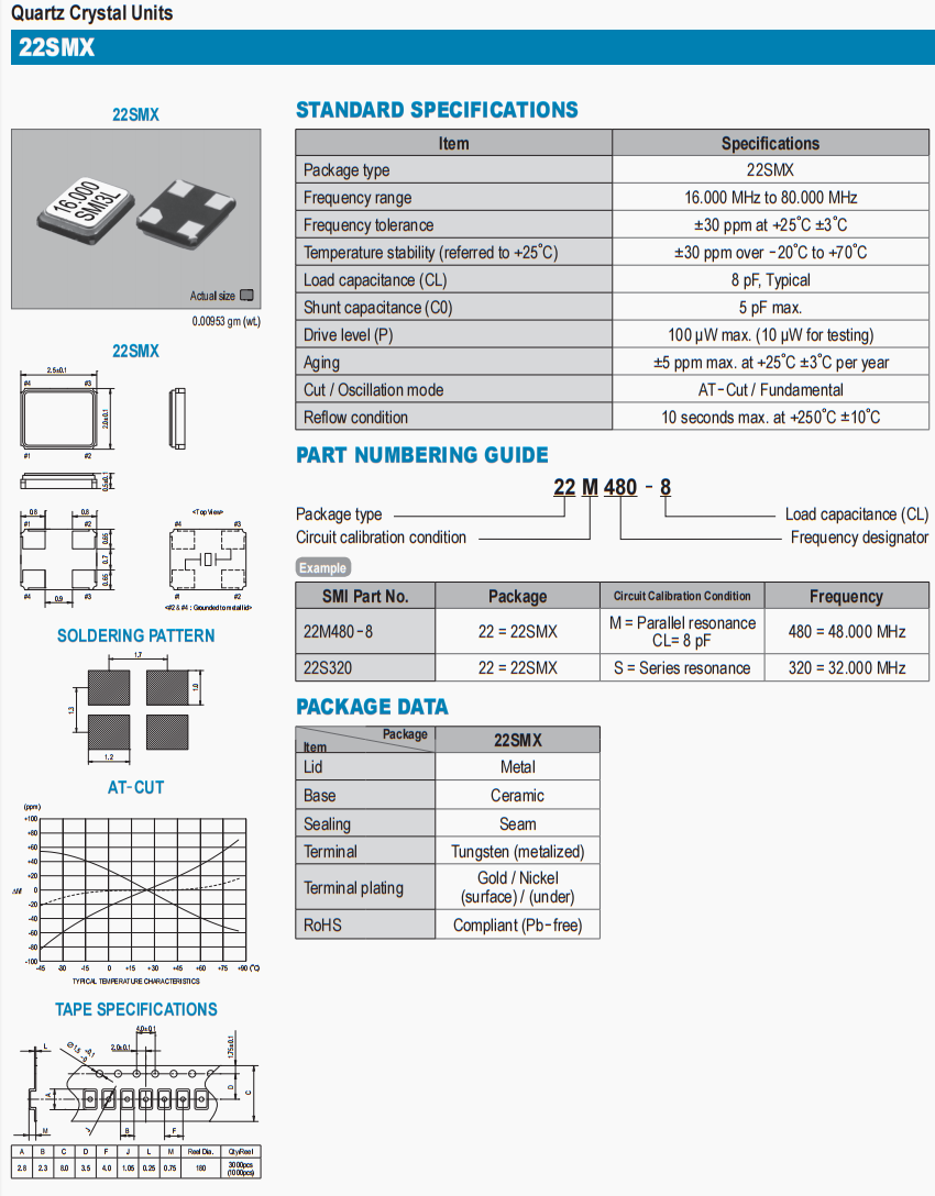 22M420-10晶振,SMI高品質環保晶振,電車充電槍晶振,日本SMI晶振公司,高品質晶振,石英晶振,貼片晶振,無源晶振,6G晶振,6G基站控制器晶振,21SMX晶振,低損耗晶振,2016晶振,超小型晶振,日本進口晶振,四腳晶振.貼片石英晶體,體積小,焊接可采用自動貼片系統,產品本身小型,表面,特別適用于有小型化要求的市場領域,因產品小型,薄型優勢,耐環境特性,包括耐高溫,耐沖擊性等,在移動通信領域得到了廣泛的應用,晶振產品本身可發揮優良的電氣特性,滿足無鉛焊接的高溫回流溫度曲線要求.