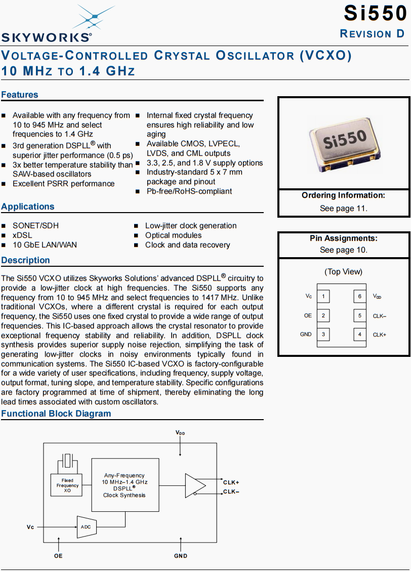 | 536FB155M520DG | Skyworks晶振 | Si536 | XO | 155.52 MHz | LVDS | 2.5V | ±20ppm |