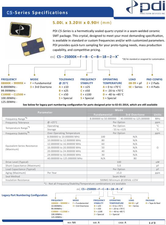 | *1 - Not all Frequency/Stability/Temperature combinations are available | ||||