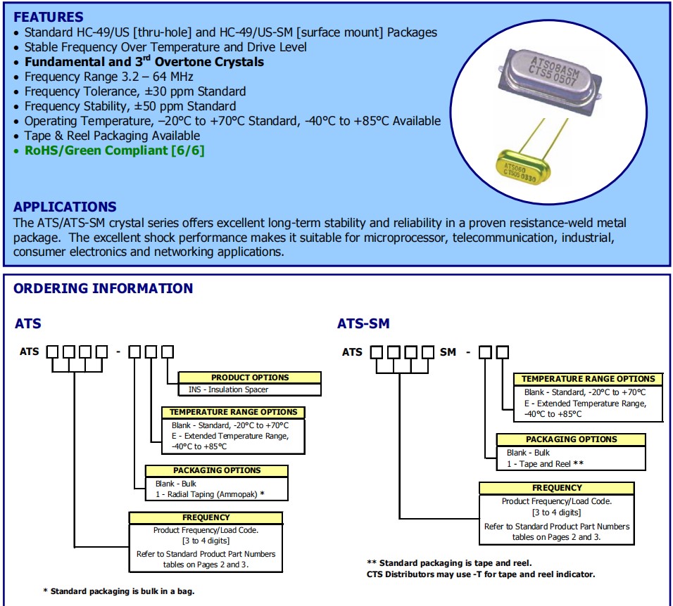 | ATS049ASM-1 | CTS晶振 | ATS-SM | MHz Crystal | 4.9152MHz |