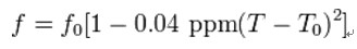 石英晶體的頻率特性取決於形狀或切割方式。音叉型晶體通常會切割成溫度特性是以25℃為中心的拋物線。這意味著,音叉晶體振盪器在室溫下產生的共振頻率接近其目標頻率,當溫度或增加或減少時頻率都會降低。頻率-溫度曲線為拋物線的常見32.768千赫音叉晶體的溫度係數是 負百萬分之0.04/℃²。
