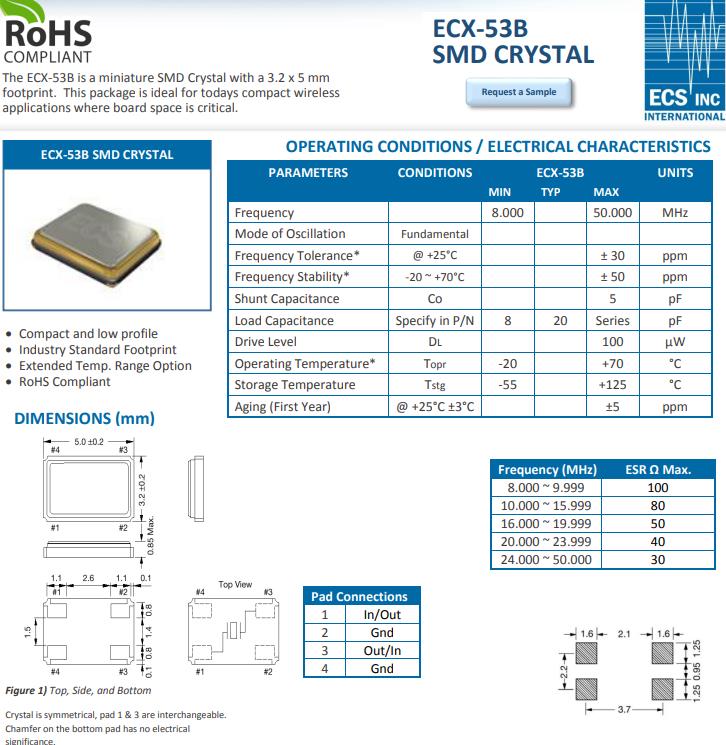 | ECS-250-8-30B-CKM | ECS晶振 | ECX-53B | MHz Crystal | 25MHz | -20°C ~ 70°C |