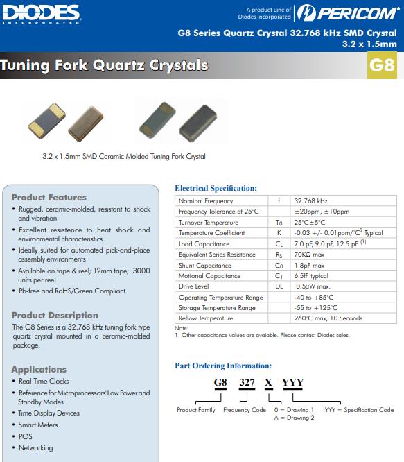 | G83270022 | Diodes晶振 | SaRonix-eCera™ G8 | 32.768kHz | - |