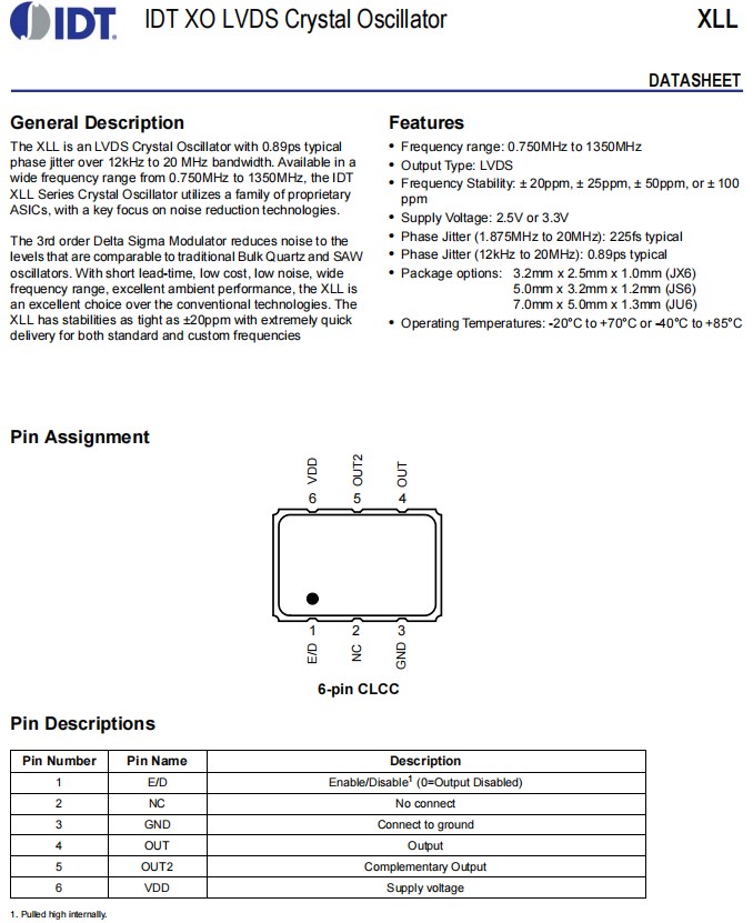 | XLL73V005.000000X | IDT晶振 | LVDS | 3.3V | OSC VCXO 5.000MHZ SMD |