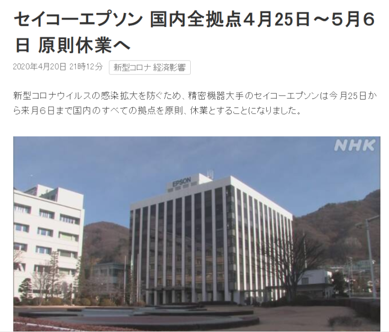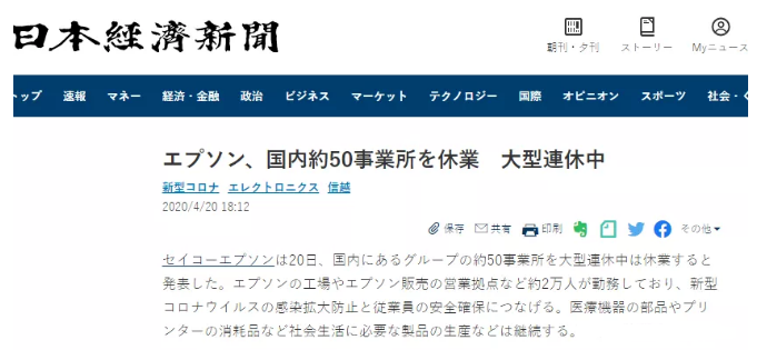 在日本企業(yè)中愛普生集團不是首家因新冠病毒疫情影響停工的企業(yè)了,較上周有東芝也宣布在日本本土內所有企業(yè)停工,相信最近相繼宣布的企業(yè)會越來越多。