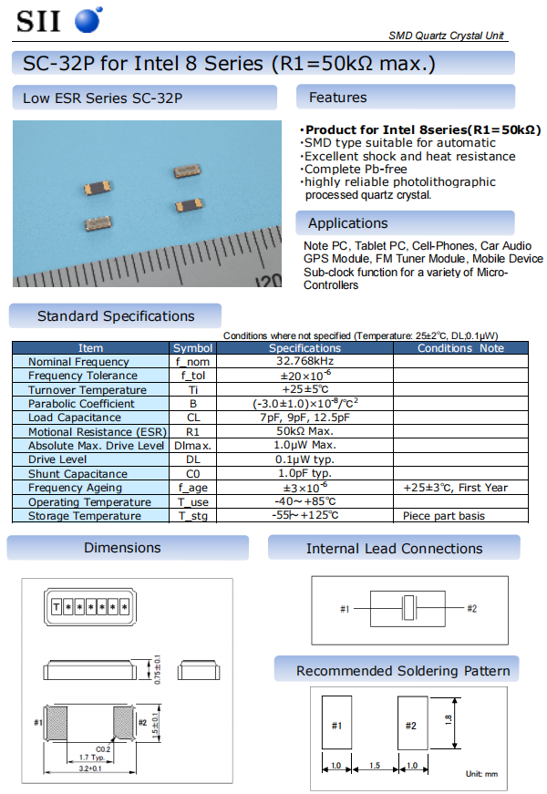 更多>>精工6G晶振物料SMD32.768kHz石英晶體電阻降低Q-SC32S0321060AAAF