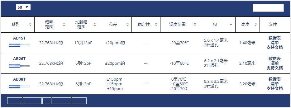 ABRACON晶振32.768KHz插件型號代碼表: