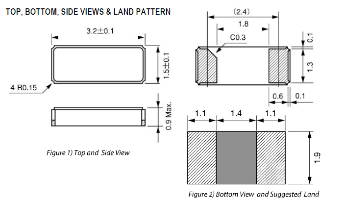 | ECS-.327-6-34S-TR | ECS Inc. | ECX-34S | kHz Crystal (Tuning Fork) | 32.768kHz | -40°C ~ 125°C | 2-SMD | 0.126" L x 0.061" W (3.20mm x 1.50mm) | 0.035" (0.90mm) |