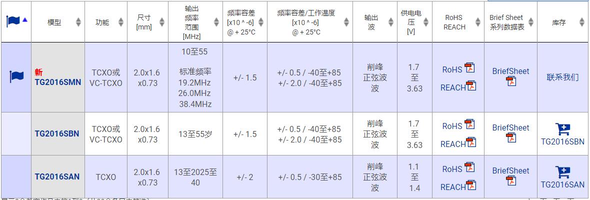 愛普生TCXO晶振系列型號表: