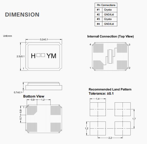 | X3S012000BA1H-HU | 加高晶振 | HSX321S | 12 MHz | ±20ppm | 10pF |