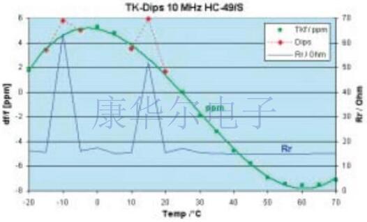 ●檢查活動(dòng)驟降:在室溫下完美工作的石英晶體在溫度范圍內(nèi)可以顯示出更高的諧振阻抗和更強(qiáng)的頻率跳躍.其原因是主共振與其他形式的振動(dòng)的干擾共振的耦合,通常僅在狹窄的溫度范圍內(nèi)發(fā)生,并導(dǎo)致所謂的活性下降.具有條紋石英的小型化石英晶體特別容易受到這種傾角的影響,即窄矩形石英盤,尤其是較低的頻率.