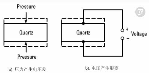 壓電效應(物理特性):在水晶片上施以機械應力時,,會產生電荷的偏移,即為壓電效應。