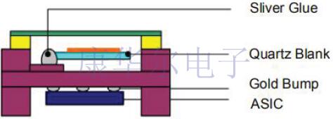 圖6說明了具有H型封裝結(jié)構(gòu)的TCXO.封裝的橫截面類似于字母H,在上腔中安裝有密封AT切割石英諧振器,在下腔中安裝有IC芯片.不合格的石英晶體諧振器可以在倒裝芯片組裝之前進行檢查和剔除.